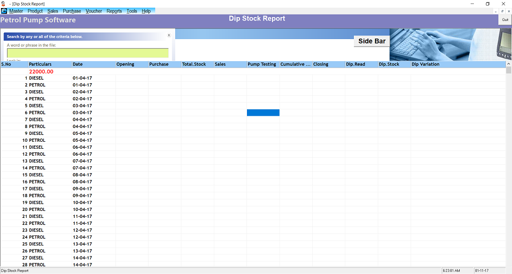 | Reports | Dip Stock Report,Temperature Reading Report Sales Report,Daily MIS Report Shift wise report Stock Report Daybook Report Cashbook Report Outstanding Report |