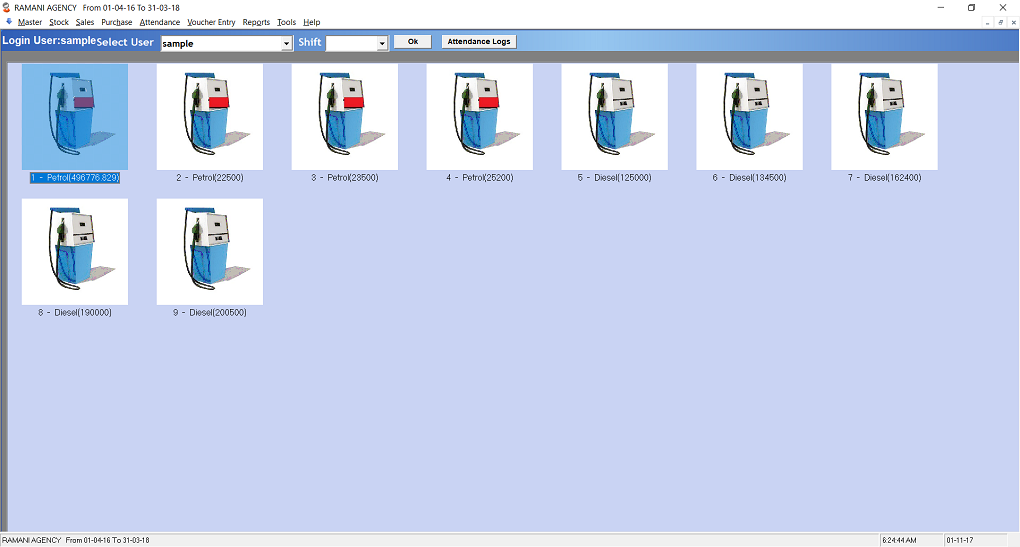 | Masters | Tank master,Pump Master,Fuel Master,Dip Settings Account Master |