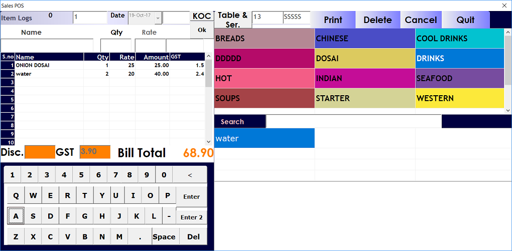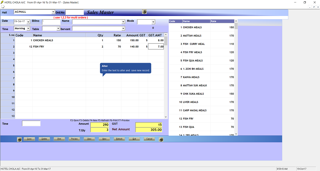 Used to maintain restaurant billing and inventory