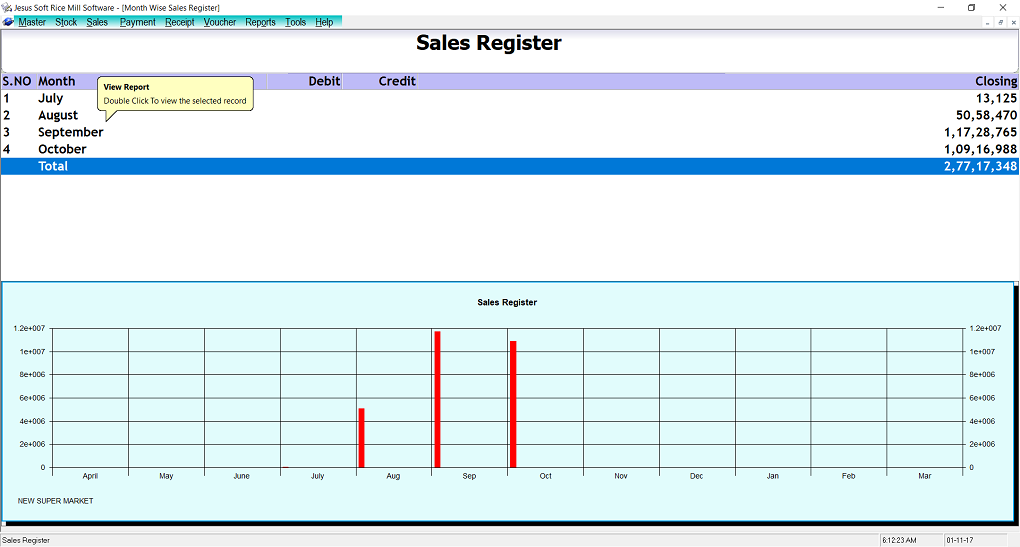| Masters | Rice Master,Paddy Master,Farmer Master,Supplier Master Customer Master,Machinery |
